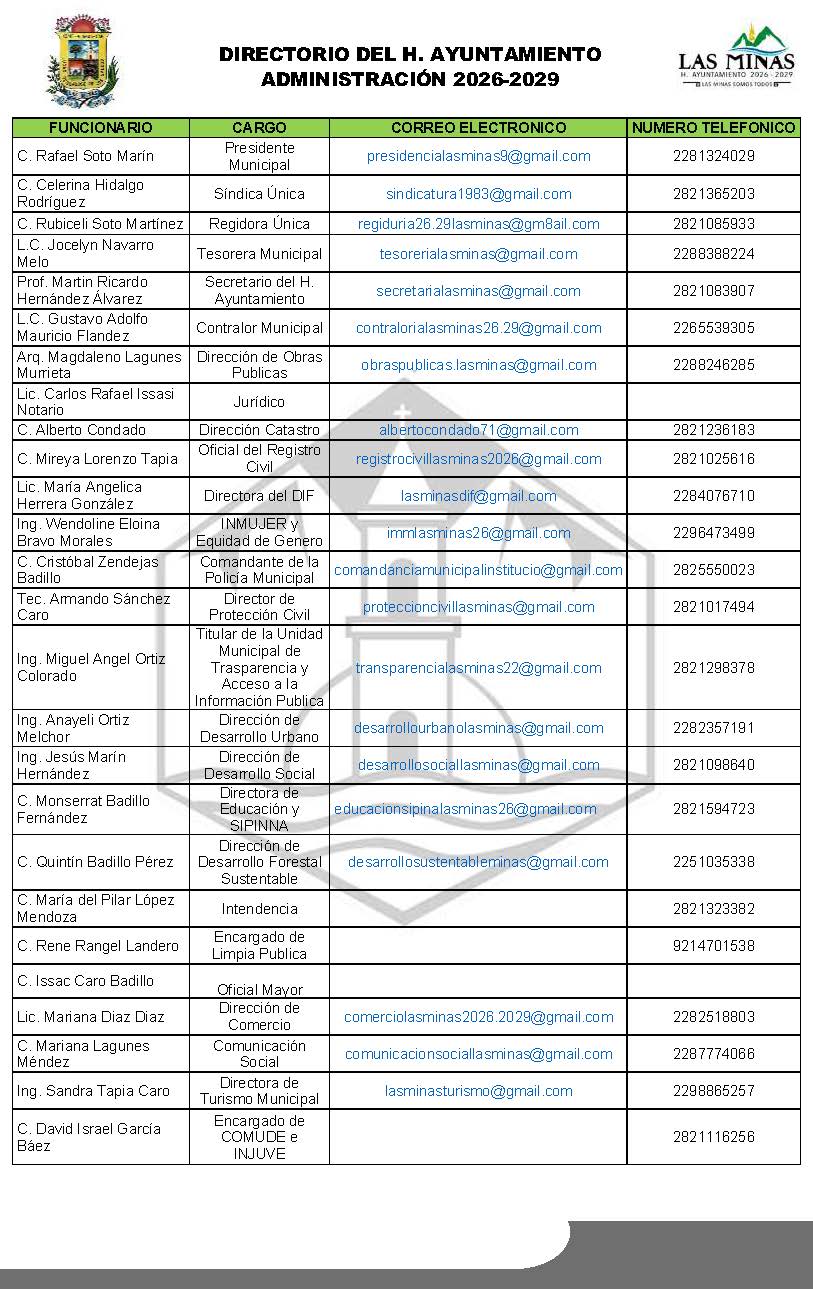H. Ayuntamiento de Las Minas, Gobierno Municipal 2026-2029.